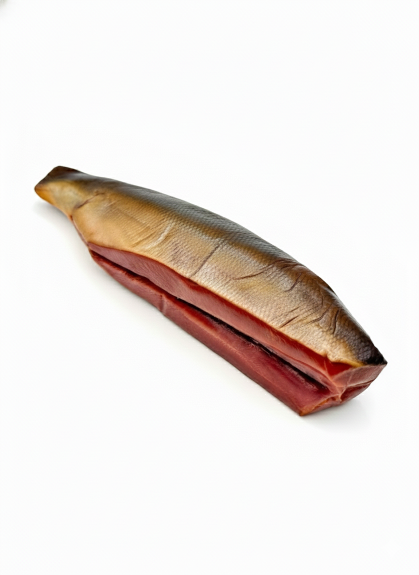 Cold-smoked sockeye salmon balyk is a premium delicacy made from the back of wild Kamchatka sockeye (red salmon). The fish is caught in the pristine waters of the Pacific Ocean, where it develops its rich flavor and beneficial omega-3 fatty acids.