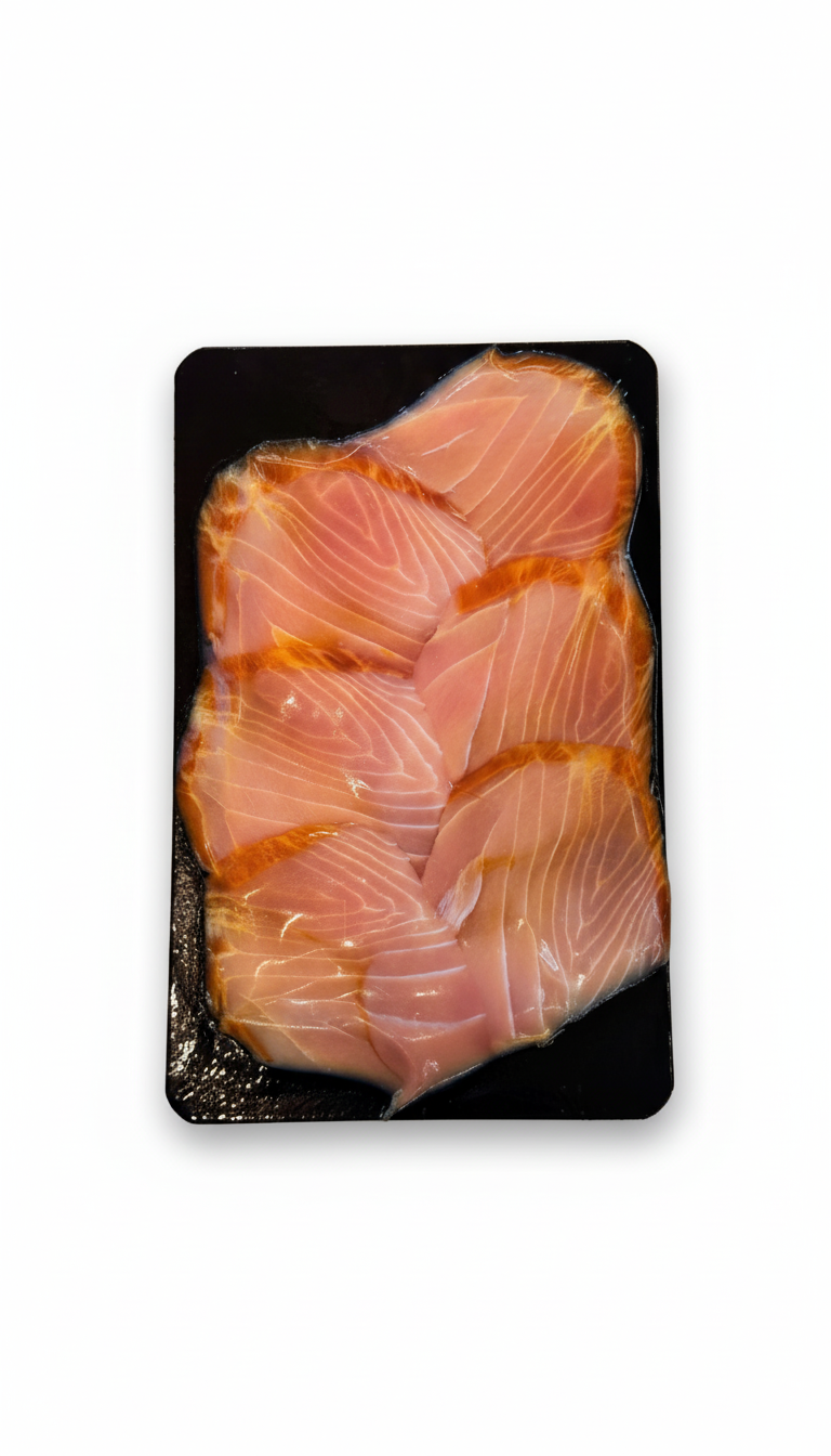 Discover the luxury of taste! Exquisite, aromatic Cold-Smoked Sturgeon in convenient slices. 300g of pure indulgence.